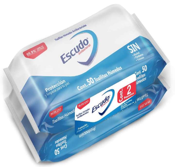 Amazon Ir a la ofertaEscudo Antibacterial, Toallitas Húmedas Antibacteriales Para Manos, 100 Piezas (2 paquetes de 50 toallitas c/u).
