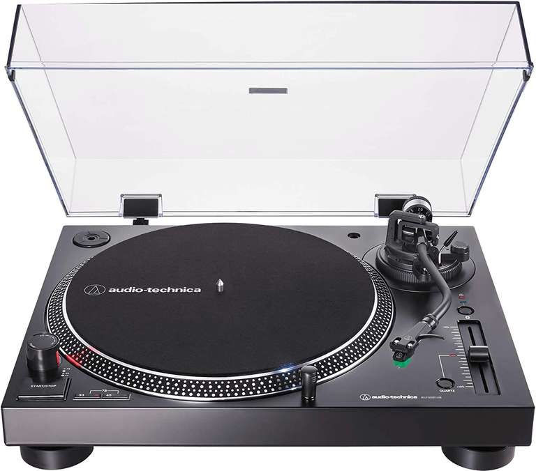 Amazon Ir a la oferta- Funcionamiento totalmente manual, velocidades seleccionables de 33/45/78 RPM con accionamiento directo, servomotor DC y control dinámico ajustable anti-patinaje