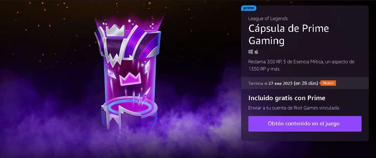 Capsula de league of legends en Prime gaming