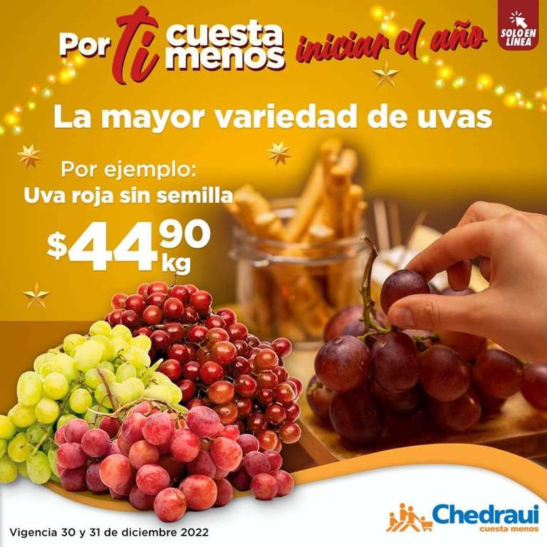 Chedraui Ir a la ofertaLes comparto la variedad de uvas con los precios de Chedraui en línea y tienda física.
