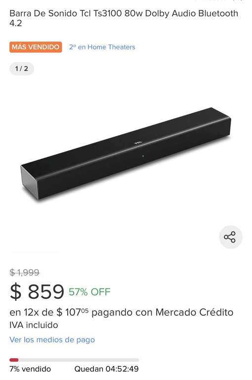 Barra de sonido TCL Ts3100 en oferta del día en ML