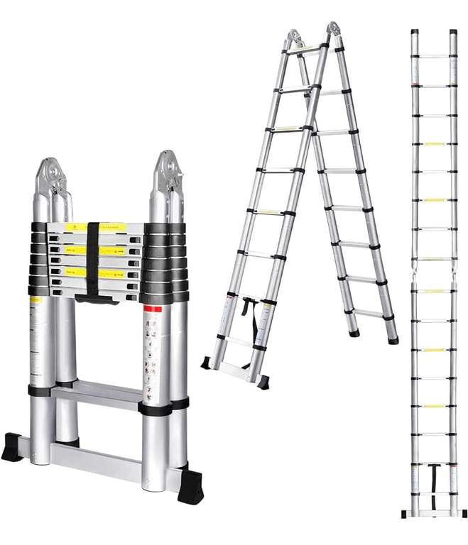 Amazon Ir a la ofertaEscalera versátil todo en uno: gracias a su fuerte mecanismo de bloqueo de bisagra, la escalera telescópica puede actuar como una escalera de marco A, escalera de extensión recta, escalera de emaleterscalera y soporte de andamio.