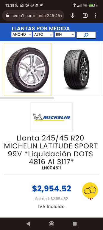 Llanta 245/45 R20 MICHELIN LATITUDE SPORT 99V - Serna 1 (envío gratis)
