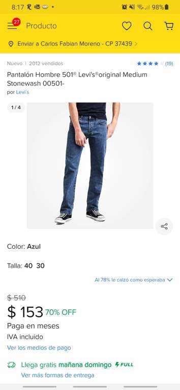 Pantalon Levi's en solo $153 pesos
