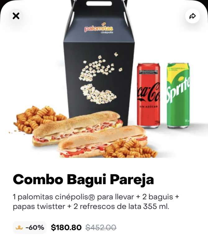 RappiPor si tienes flojera de salir este viernes y tienes planeado tarde de pelis, aparece con 60% este combo en Cinépolis VIP por Rappi ojalá les sirva algunos. Envío gratis prime
