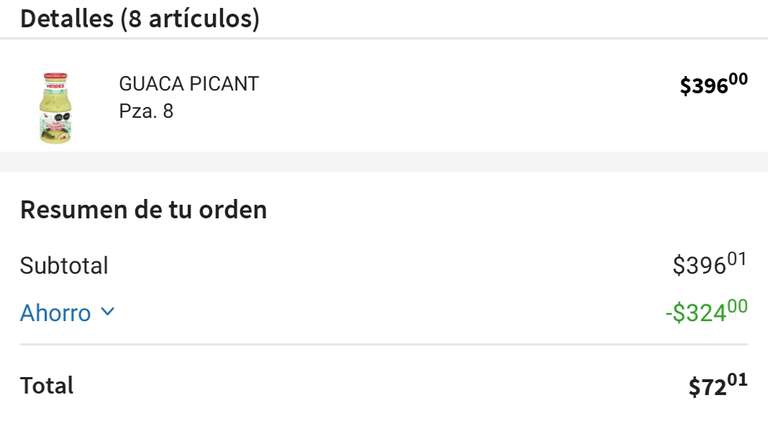 Bajo a 9 pesos cada salsa de guacamole