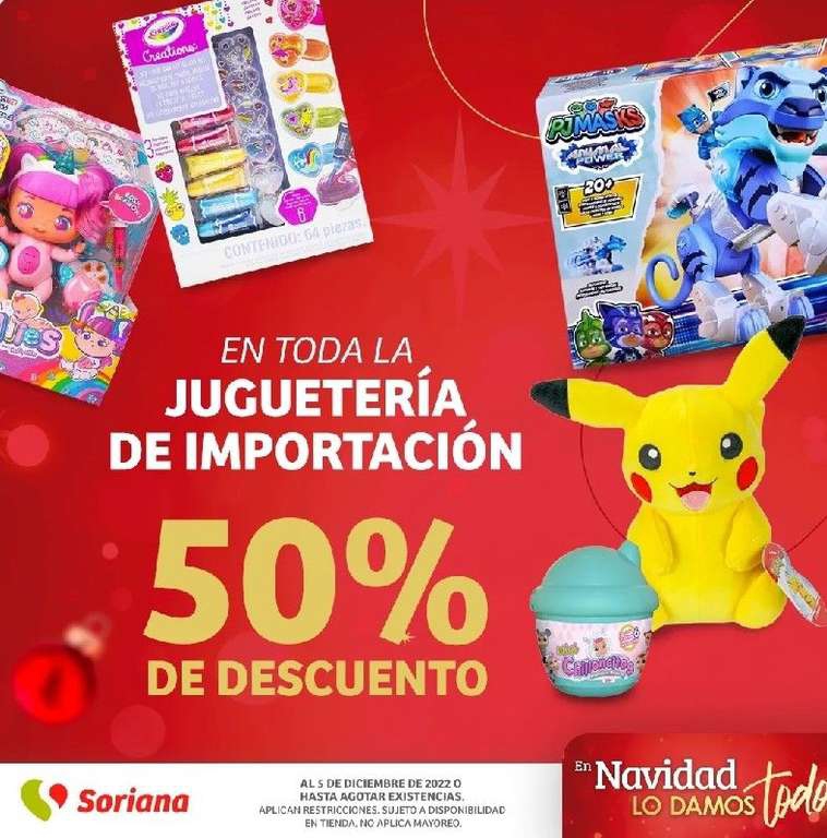 Soriana: 50% En toda la Jugueteria de Importación y 30% en Montables y Bicicletas