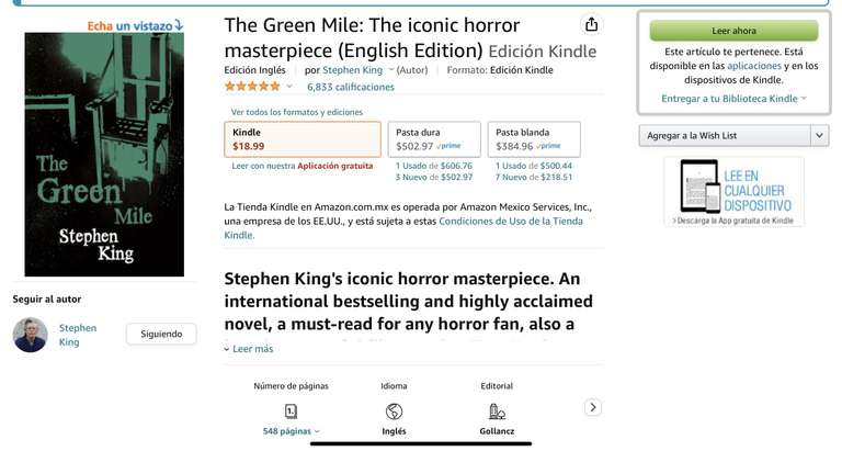 Amazon Ir a la ofertaEstá esta novelaza del rey a un buen precio, solo que en inglés, pero es bueno para darle una practicada al inglés y de paso leer una excelente novela.