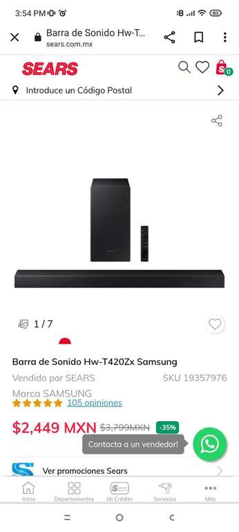 Barra de Sonido Hw-T420Zx Samsung con el 35% de descuento