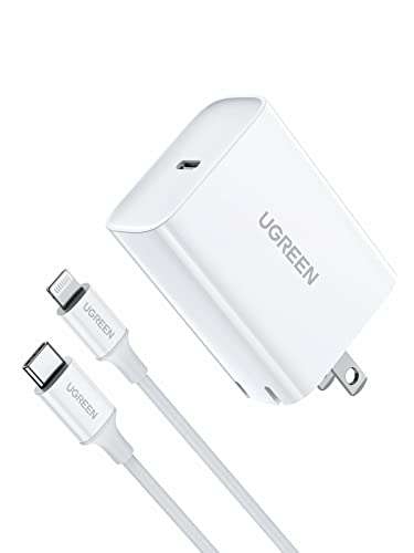 Amazon Ir a la oferta- Cargador Rapido para iPhone: Equipado con un puerto USB tipo C, el cargador UGREEN PD 3.0 le proporciona una potencia de salida máxima de 20W, lo que le permite cargar su iPhone 14 13 Pro 12. NOTA: Se necesita un cable USB c A lightning MFI certificado.