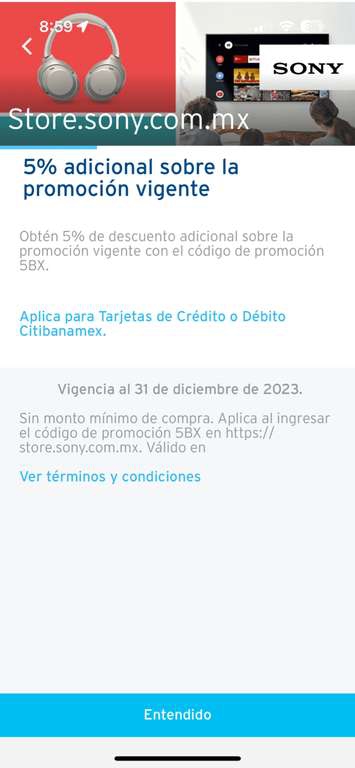 Citibanamex 5% de descuento en Sony No es mucho pero es un trabajo honesto