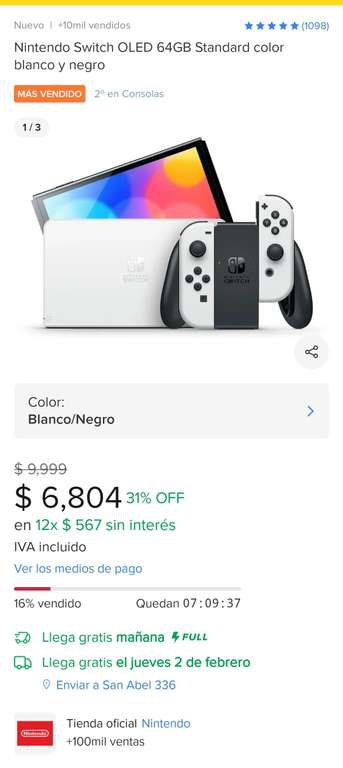 Mercado Libre Ir a la ofertaVendida por la tienda oficial de Nintendo en Mercado Libre
