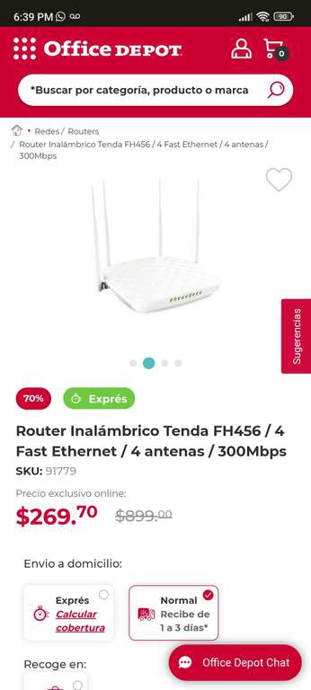 Office Depot Ir a la ofertaRouter Inalámbrico Tenda FH456 / 4 Fast Ethernet / 4 antenas / 300Mbps