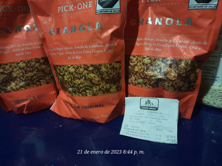 En las compras del día encontré Granola de la marca Pick One de 300 grs.