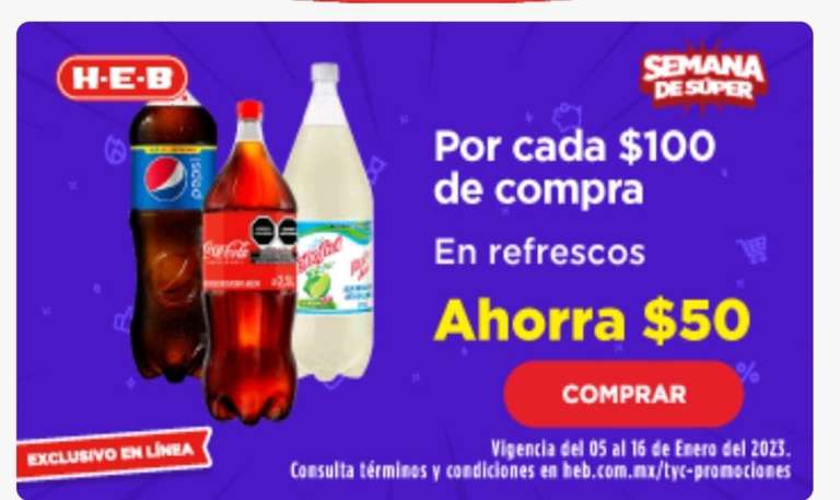 HEB Ahorra 50 por cada 100 en refrescos