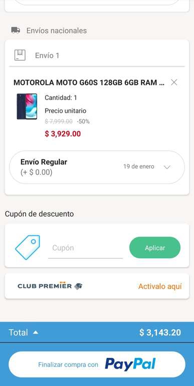 Linio: Motola g60s 6 de ram y 128gb, pagando con PayPal