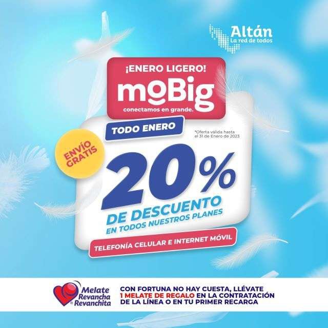 Mobig 20% de descuento en todos sus planes y SIM GRATUITA, plan anual 999 a 799(sale a 66.58 cada mes)