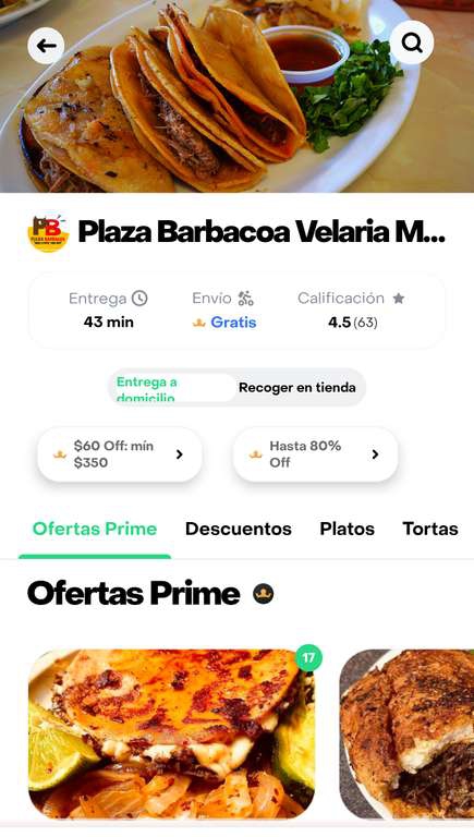 Rappi 80% descuento = $6 pesos la quesabirria en Plaza barbacoa velaria Aguascalientes
