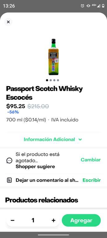 En rappi en la tienda Chedraui el PASPORT tiene el 56% de descuento queda en $95