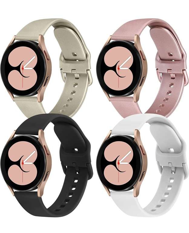 Amazon Ir a la ofertaPaquete de 4 correas compatibles con Samsung Galaxy Watch 4 Bands 40 mm 44 mm, Galaxy Watch 4 Classic Band 42 mm 46 mm, 20 mm correa deportiva de silicona ajustable correa de repuesto para Galaxy Watch 4.