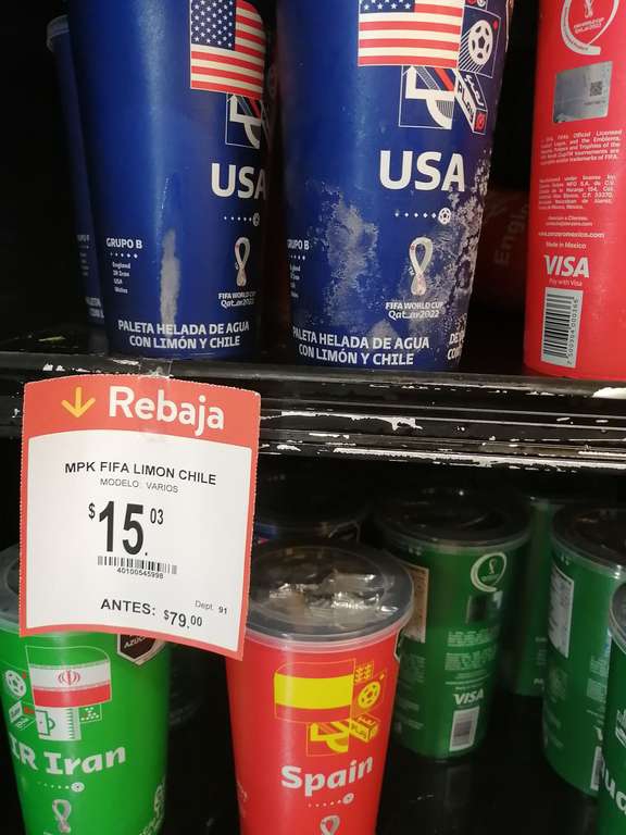 Tres piezas de paletas con Chile con vaso del mundial a 15 pesos EN Walmart CD del Carmen