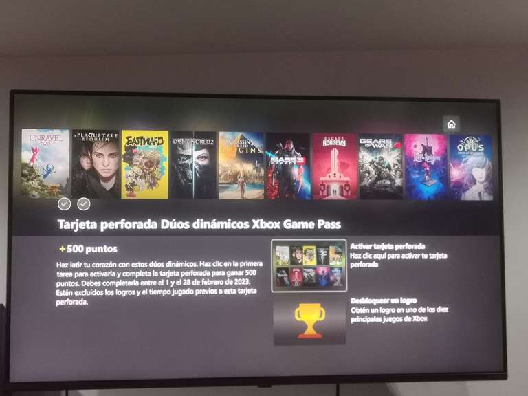 Xbox500 puntos de Microsoft rewards por tarjeta perforada dúos dinámicos xbox game pass.