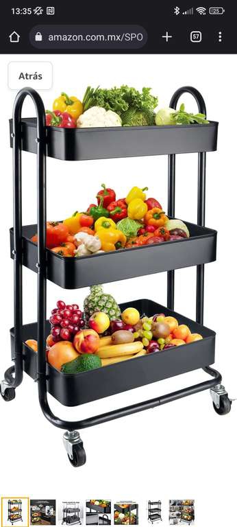 【Diseño de Barandilla Alta】El carro con ruedas de tres capas tiene un diseño ergonómico. El diseño de apoyabrazos alto puede evitar caídas y hacer que sea más seguro almacenar artículos. La mejor capacidad de peso para cada estante es de hasta 20 kg. Además de su cesta de malla diseño hueco también tiene función transpirable.