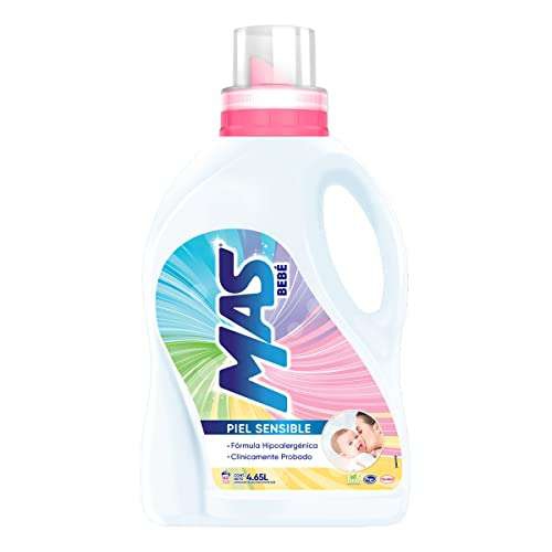 Amazon Ir a la ofertaDetergente Líquido MAS Bebé, 4.65 L (62 cargas).