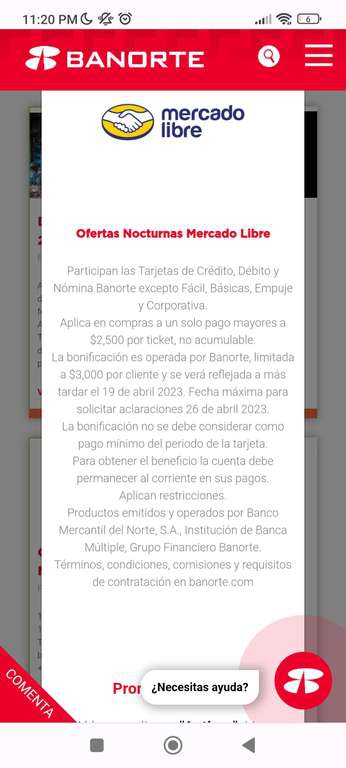 Mercado Libre Ir a la ofertaBonificacion en mercado libre hoy 15 de febrero con Banorte, en la imagen vienen términos