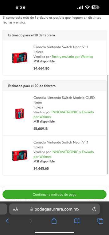 Bodega Aurrera: Nintendo Switch 1.1 (Oled $5609) con TDC BBVA 18 MSI