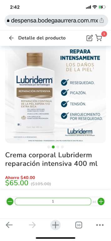 Bodega Aurrera Ir a la ofertaCrema corporal Lubriderm reparación intensiva 400 ml