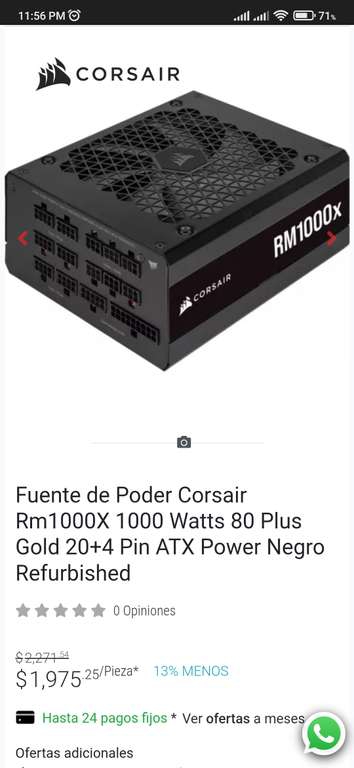 Considero que es un buen precio siendo que es de 1000W y es de las chidas de Corsair.