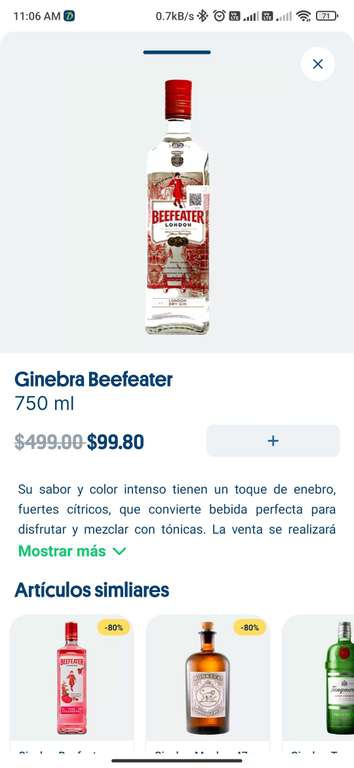 En la app JOKR hay varios descuentos como la Ginebra Beefeater en 99.