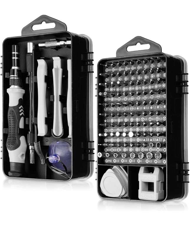 Amazon Ir a la oferta★【115 en 1 Destornilladores Precisión】El juego de destornilladores de precisión podría usarse en la reparación común de electrodomésticos, como televisores, aires acondicionados, ventiladores, refrigeradores, automóviles, etc. También es una necesidad en el desmontaje y mantenimiento de teléfonos móviles, cámaras digitales, relojes, anteojos, computadoras portátiles, computadoras portátiles y consolas de juegos.