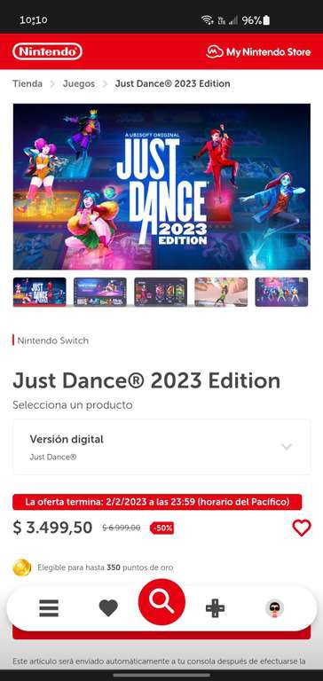NintendoBuscando el JD2023 barato y dado que en formato físico ya solo viene ma caja me metí a la eshop argentina y haciendo la conversión me salio en 320 y tantos pesos, eso si pagando con BBVA Digital para evitar impuestos, precio más bajo histórico creo yo :v ... Ya saben como comprar en la eshop de argentina n.n