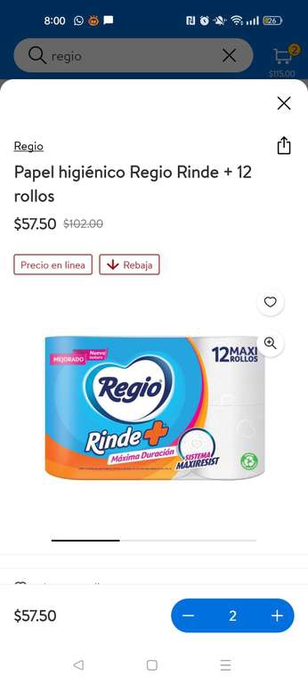 Walmart Ir a la ofertaEn Walmart express estar el papel regio de 12 rollos