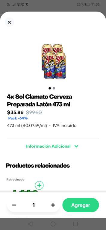 Rappi 4 sol bronce con clamato por 36 pesos por turbo rappi.
