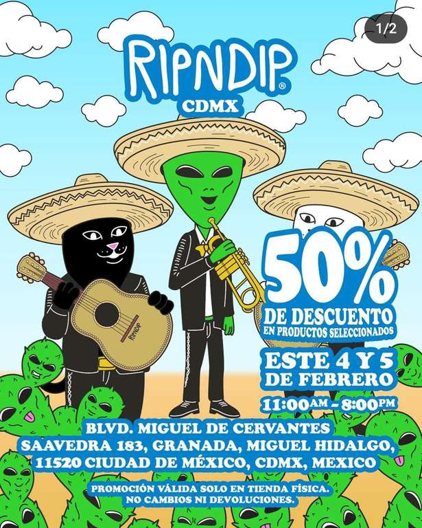 RIPNDIP Hasta 50% de descuento en prendas seleccionadas 4 y 5 de febrero CDMX