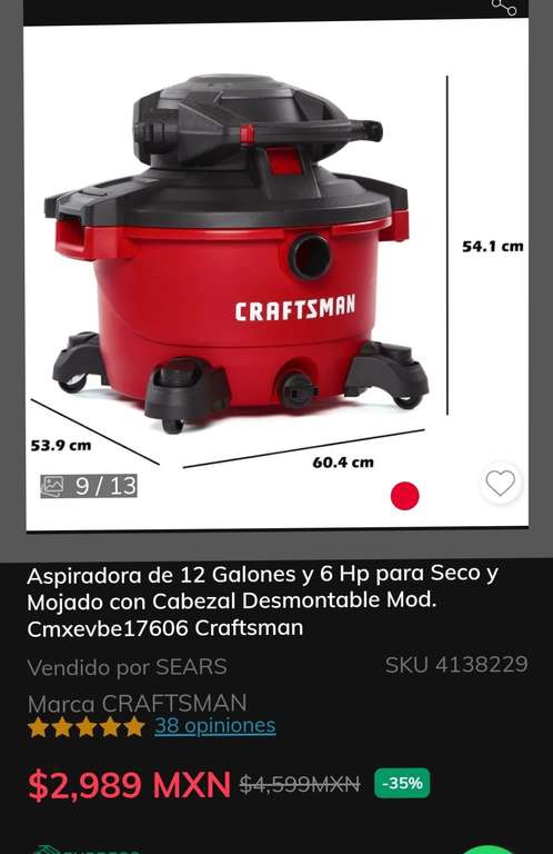 Sears Ir a la ofertaExcelente aspiradora y secadora Craftsman con opción de desmontar para hacerla sopladora de ojas