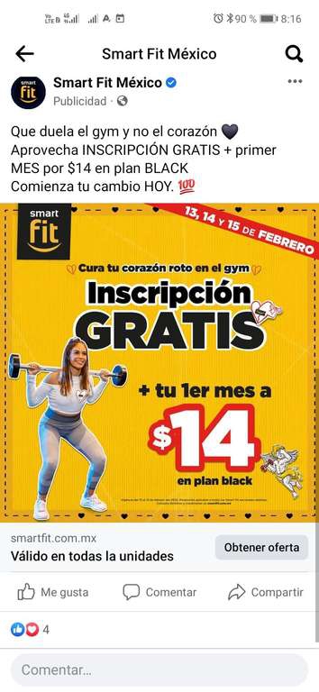 SmartFit Ir a la ofertaInscripción gratis y prime mes en $14 durante los días 13, 14 y 15 de febrero