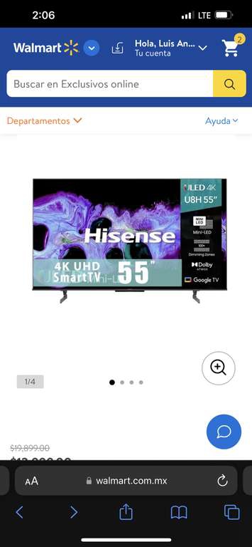 Walmart: TV Hisense 120hz 55 Pulgadas 4K Ultra HD Smart TV ULED 55U8H con Citibanamex