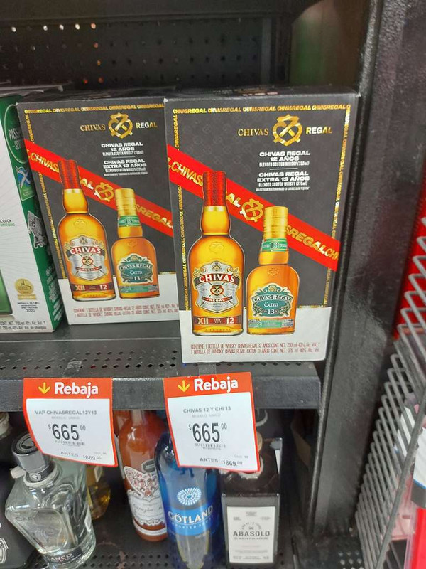 WalmartPaquete Chivas 12 + Chivas 13 375 ml. A 655 pesos, Chivas solo, sale en 855 (por eso anexo la foto de comparación). Yo que soy fan de esta marca de Whiskys, siempre los compro cuando están en oferta y valen la pena al 100 (visto en Walmart Villahermosa Ruiz Cortínes. El de City Center)