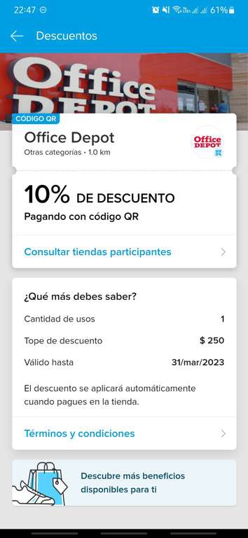 10% de descuento en Office Depot pagando con mercado de pago QR (compra mn $400 con un tope de $250)