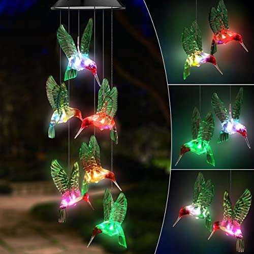 Amazon Ir a la oferta- ✿Campanas de Viento Solar: También están hechos con material ABS duradero, que no se decolora ni se deforma fácilmente. Los paneles solares almacenan energía natural para iluminar a los colibríes sin electricidad. Nuestras luces de campana de viento para exteriores son impermeables y duraderas, perfectas para colgar en su jardín o patio.