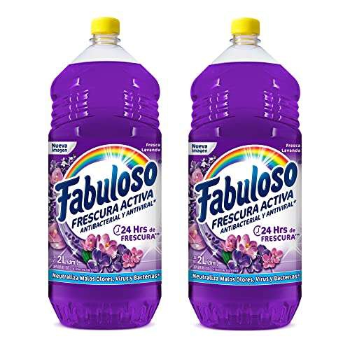 Amazon Ir a la ofertaFabuloso Frescura Activa, Limpiador Multiusos Líquido, Fresca Lavanda, 4L, (2 pack 2L), Antiviral y Antibacterial, Limpiador Desinfectante, 24Hrs de frescura.