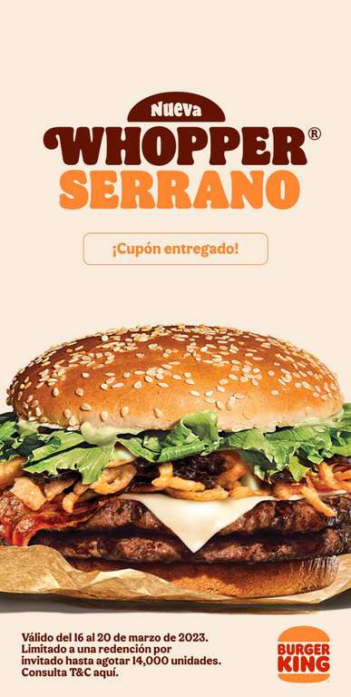 Burger King Nuevo Serrano Whopper Gratis