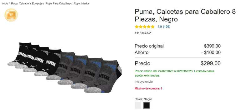 Calcetines Costco Puma Hombre's 8 Piezas Negros