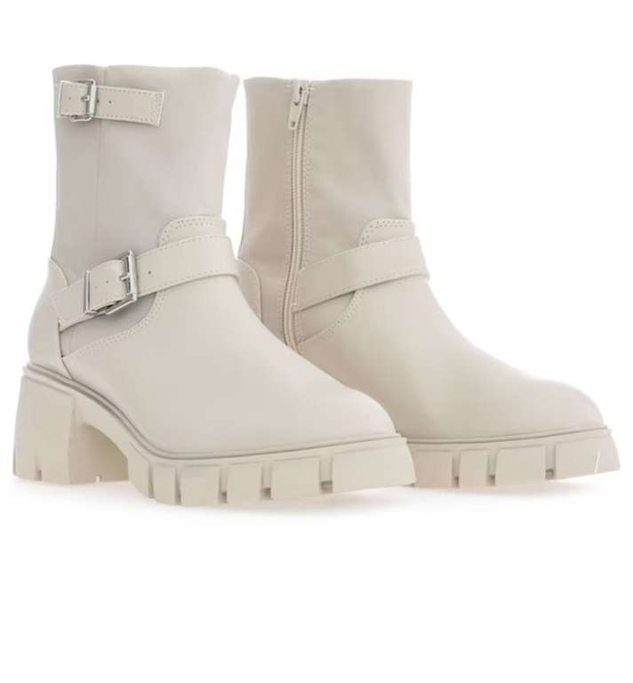 Vienen en color beige, un tono claro fácil de combinar. También tiene suela track que te da mayor realce y te brinda estabilidad en cualquier superficie. Están hechos de materiales 100% sintéticos.