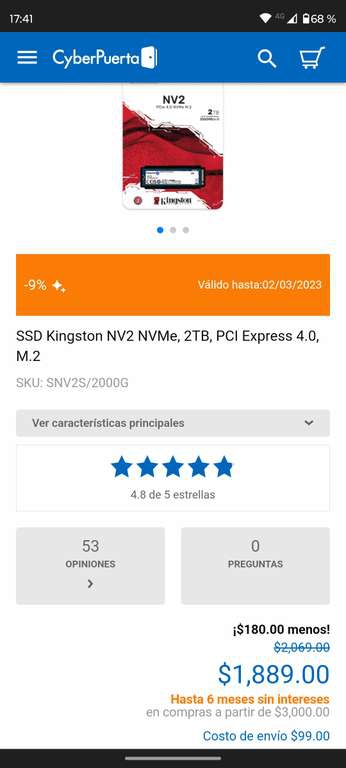 CyberPuerta Ir a la ofertaSsd M.2 Kingston NV2 de 2Tb en su precio más bajo, pueden ocupar el código MELOLLEVO solo para cuentas nuevas