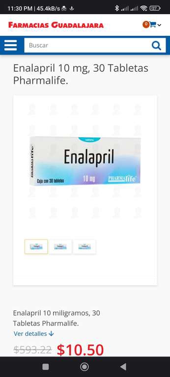 Farmacia Guadalajara Enalapril caja 30 comprimidos 10mg 10.50